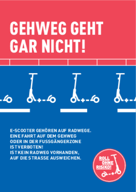 Gehwege sind tabu! Wer E-Scooter fährt, muss Radwege, Radfahrstreifen und Schutzstreifen nutzen. Wenn kein Radweg vorhanden ist, gehört der E-Scooter auf die Fahrbahn.